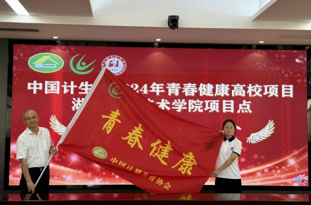 孝感市计生协专职副会长吕彦平向多宝网页版青春健康同伴社授旗。