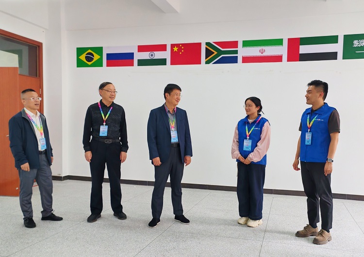 10月12日,校长郭沙、副校长胡昌杰一行深入比赛现场,实地检查场地运行、信息技术、设备状态、后勤保障、实时观摩等情况,看望裁判员和选手代表,慰问大赛志愿者。