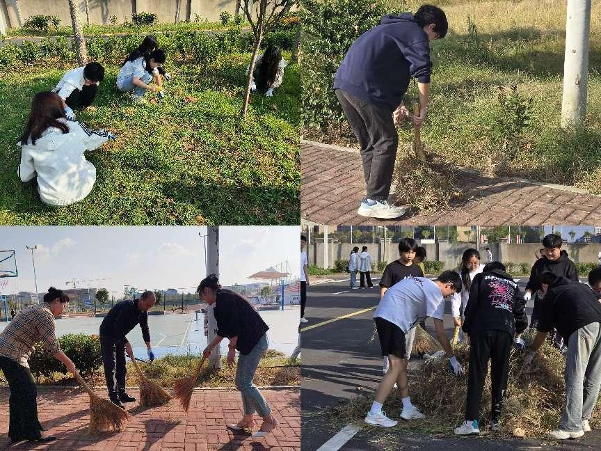 劳动过程中,师生们热情高涨,同学们在老师的悉心指导下,不畏辛劳、不惧尘土,与老师一起以饱满的热情投入到校园环境的清理与美化中,对各自负责的区域进行了细致入微的打扫与整理。汗水浸湿了衣背,却挡不住他们为校园添彩的坚定步伐。