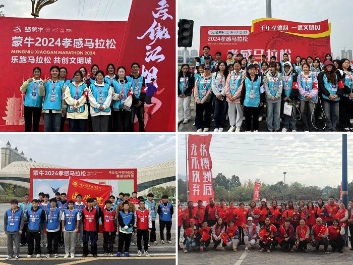 赛道上尽情奔跑,赛道旁人潮涌动,赛场外志愿暖心。为切实做好2024孝感马拉松赛事志愿服务工作,保障赛事成功举办,在本届比赛中,我校共组织志愿者1028名,分别是赛时的医护类志愿者630名、宣传志愿者46名、赛前的分包志愿者150名、接待志愿者12名、博览会志愿者190名。