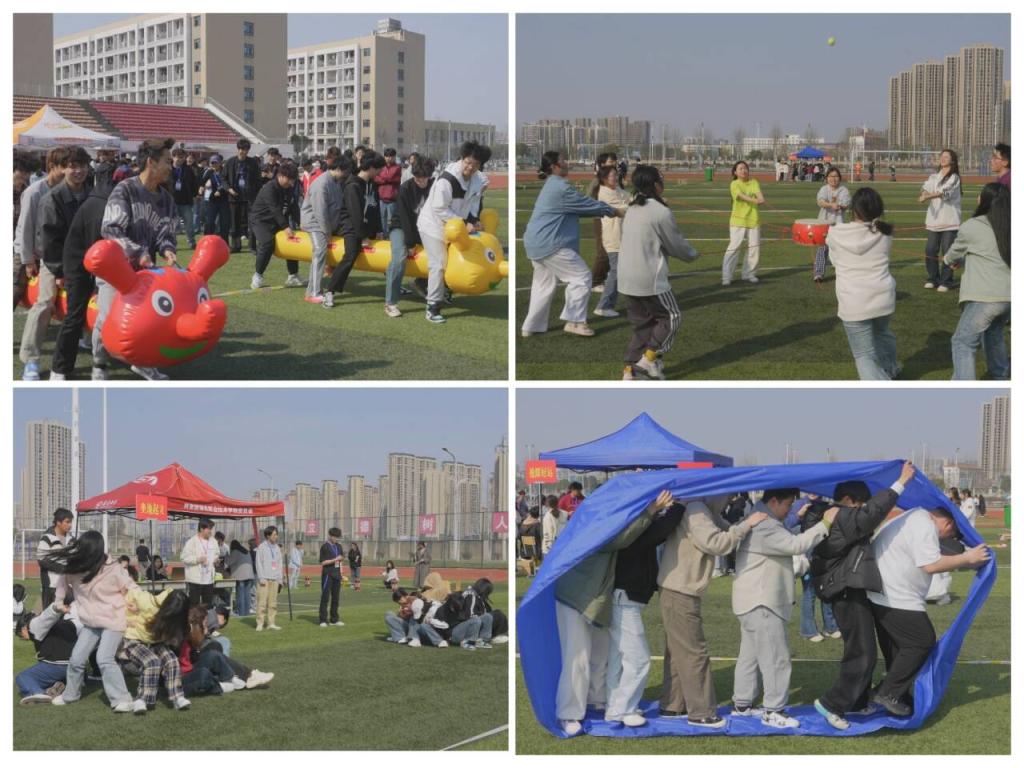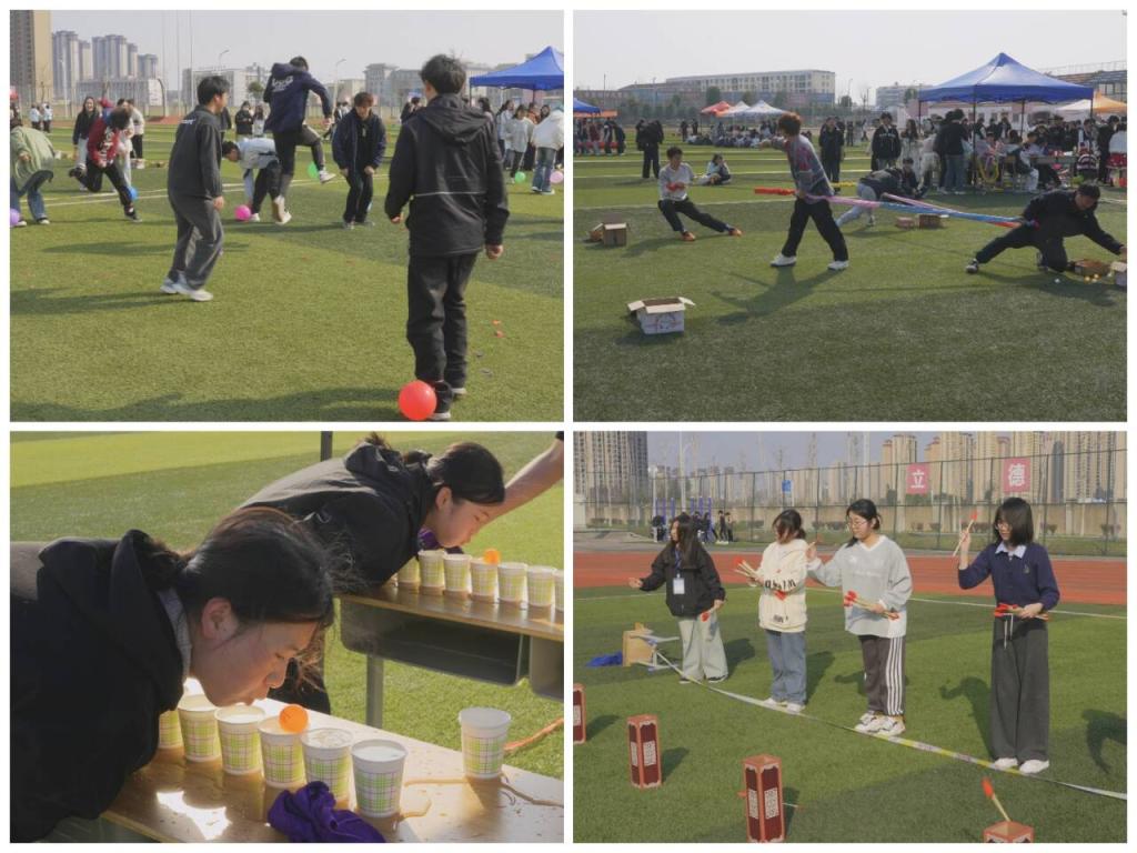 为满足学生多元化需求,本次运动会设置了团体项目、个体项目和休闲项目。团体项目热闹非凡,在击鼓颠球、竞速毛毛虫、无敌风火轮、坐地起立等团体项目中,各学院代表队成员全力以赴、精诚合作,在欢声笑语中放松了身心,更增强了团队凝聚力和协作力。
