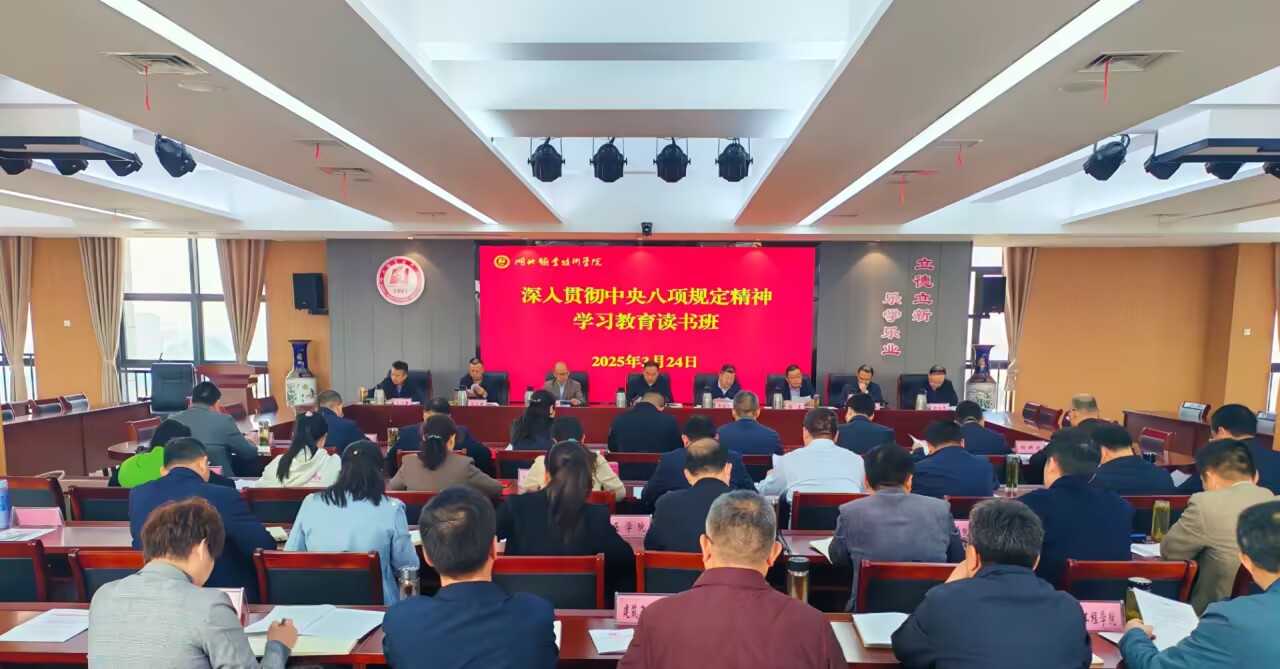(本网讯 石文亮 )按照中央和省委市委深入贯彻中央八项规定精神学习教育总体要求,3月21日,学校召开党委会议,研究部署在全校开展深入贯彻中央八项规定精神学习教育。为推动学习教育开好局、起好步,党委决定集中3天时间,举办学校深入贯彻中央八项规定精神学习教育读书班。24日上午,党委书记郭国文主持召开开班动员会并作专题辅导报告。全体校领导及各二级单位党政主要负责人参加会议。