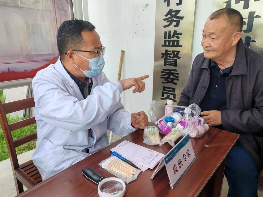 “您这个属于神经性皮炎,平常注意不要抓挠,保持好日常休息,这是给您开的药,回去按时涂抹。”一位接受治疗的老人高兴地说:“我手臂上这个皮肤病,总是好了又犯,经常反复,有时候痒起来让人睡不着,医生今天详细给我讲了一下这个病反复发作的原因,我以后要多注意,专家们的服务周到、细致。”