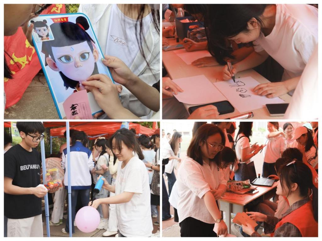 个人挑战类项目同样亮点纷呈,“听歌识曲”现场流淌着青春旋律,“纸杯叠叠乐”考验动手能力与专注力,“指尖印记”用彩色指纹绘成美好祝福,“空瓶奇遇记”结合套圈游戏与心理任务,“情绪魔方”玩转多彩表情,“字趣横生”锻炼推理思维能力。同学们手持定制闯关卡穿梭于各个展区,每次挑战成功便盖下一枚印章,这不仅是通关证明,更是成长路上的珍贵纪念。