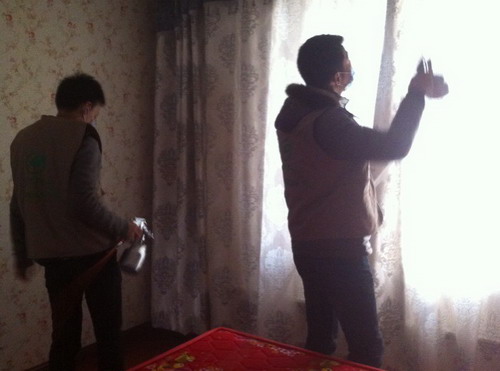湖北玖宜环保科技有限公司员工、志愿者为住户免费进行甲醛检测并治理