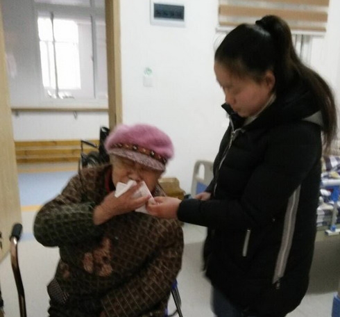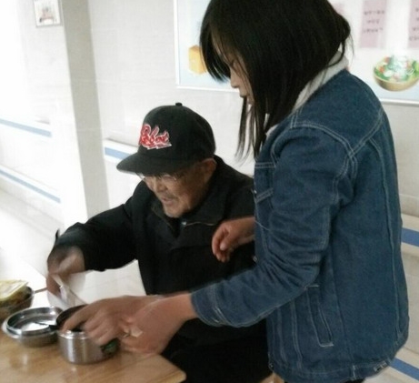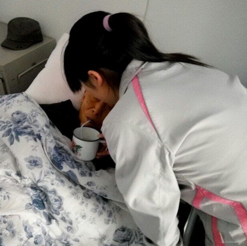 湖北职院义工社志愿者照顾患病老人