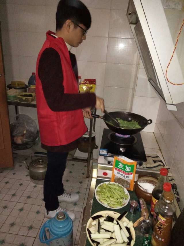 同学们分成了两个组,分别来到了80多岁的独居老人宋奶奶家和80多岁的戴爷爷家,为老人们准备好晚饭,并陪老人一起吃饭、话家常。宋奶奶说:“我就是喜欢这些孩子们和我一起,热闹、开心”。饭后,爷爷奶奶们和这些“孙子孙女们”聊天拉家常,宋奶奶是一个时髦的奶奶,自己会玩微信、QQ,拿着儿子送给她的手机,和义工社同学们一起看新闻和视频,分享自己的快乐。这些老人们的子女忙于工作,常年不在身边,虽然物质生活还过得去,但是房间里却少了些什么,多了些孤独和寂寞。