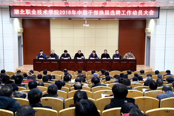 12月26日下午,学校2016年中层干部换届选聘工作动员大会在图书馆学术报告厅举行。学校党委书记蔡诗红作动员报告,校长朱虹主持会议。学校全体中层副职及以上干部、各单位教职工代表参加了会议。