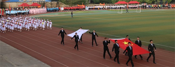伴随着激进昂扬、催人奋进的运动员进行曲,鲜花队、旗林队、各二级学院运动员代表队、教职工代表队、裁判员代表队迈着整齐的步伐依次入场,他们精神抖擞、口号响亮、激情飞扬,博得了现场师生们的阵阵掌声。