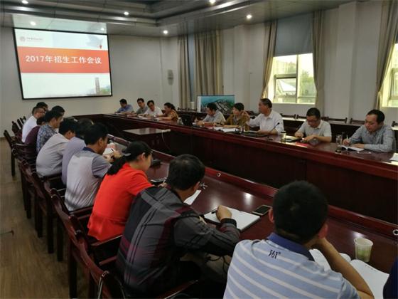 会上,招生办公室负责人丁争柱介绍了2017年招生形势、招生政策和前期招生工作,并对2017年后续招生工作作了布置。机电工程学院负责人程胜文和美容学院负责人熊蕊分别作了招生工作经验交流发言。
