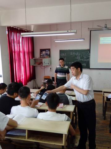 陈旭东一行随机深入课堂,听了岳辉老师讲授的《毛泽东思想和中国特色社会主义理论体系概论》课程,课后通过手机软件对学生进行了问卷测评,并与授课教师和思政课部负责人进行了交流。