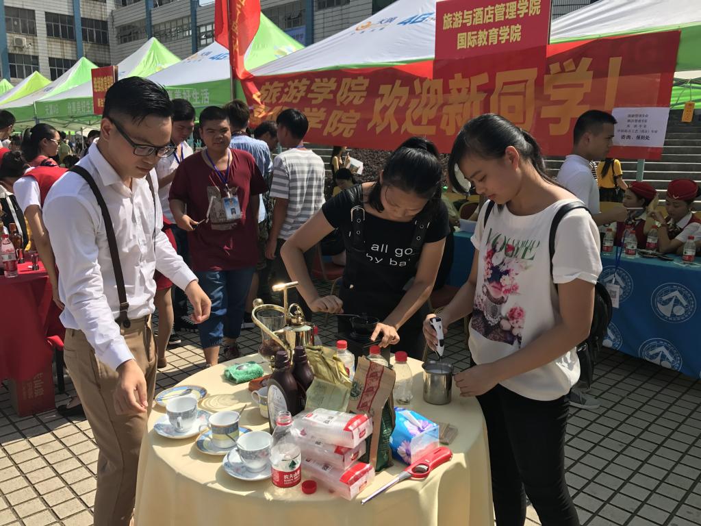 在这丹桂飘香,硕果累累的季节里,旅游与酒店管理学院、国际教育学院又迎来开学季。从9月7日开始,一批又一批悻悻学子从四面八方来到了多宝网页版旅游与酒店管理学院、国际教育学院求学。为了迎接新生,学院负责人与专业教师几天前就精心策划,全方位布置,不仅组织安排了强干的迎新队伍,还精心布置了场地环境,营造了旅游与酒店管理学院、国际教育学院迎新新亮点。整齐的桌椅,响亮的招生宣传口号,现场娴熟的西点制作、鸡尾酒调制,俊俏的学姐以及具有绅士风度的学长,无一不让新生们感到高兴与自豪:选择旅游与酒店管理学院、国际教育学院学习是值得的,是无悔的。