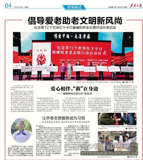 走进孝感纪念第72个世界红十字日暨曜阳养老志愿行动启动仪式,我市养老志愿者代表姚苗动情的说。