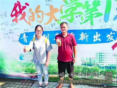 6日一大早,在李进军的陪同下,高思怡来到了多宝网页版报到。高继刚带着女儿在学校里转了转,并在迎新签名墙上留下了“父女求学梦,圆梦在湖职”的字迹。高继刚告诉记者,他高中毕业后就外出打工,工作期间一直没有放弃学习,“重返校园继续深造一直是我的梦想,‘一村多名大学生计划’ 圆了我的大学梦。”在被问到成为父亲的“小师妹”有什么感想时,女儿高思怡说,能和父亲在一所学校读书,好高兴,“我会好好学习,努力在学习上超越爸爸。”