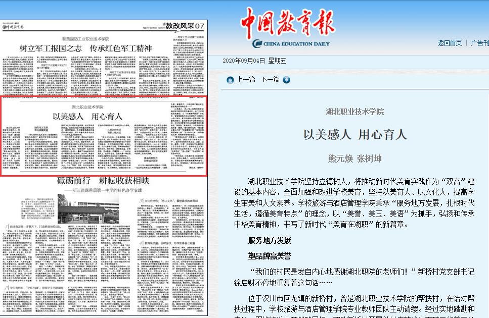 充分利用专业资源,服务地方经济社会发展,是旅游与酒店管理学院推动美育实践的切入点。4年来,除新桥村外,旅游与酒店管理学院专业团队还先后为孝感市10余个贫困乡镇、村开展了美丽乡村建设帮扶指导。如今,“扮美乡村”已成为湖北职院的一张名片,赢得了当地政府和农村干部群众的一致好评。2018年,孝感市农旅融合发展办公室在湖北职院旅游与酒店管理学院启动了孝感市农旅融合发展人才培养“助推器工程”;2019年,学院增设“一村多名大学生计划”乡村旅游开发专业,以村“两委”干部、农村创业带头人为主的首批117名学员进校学习,将美育实践的范围延伸到了当地的每一个角落。