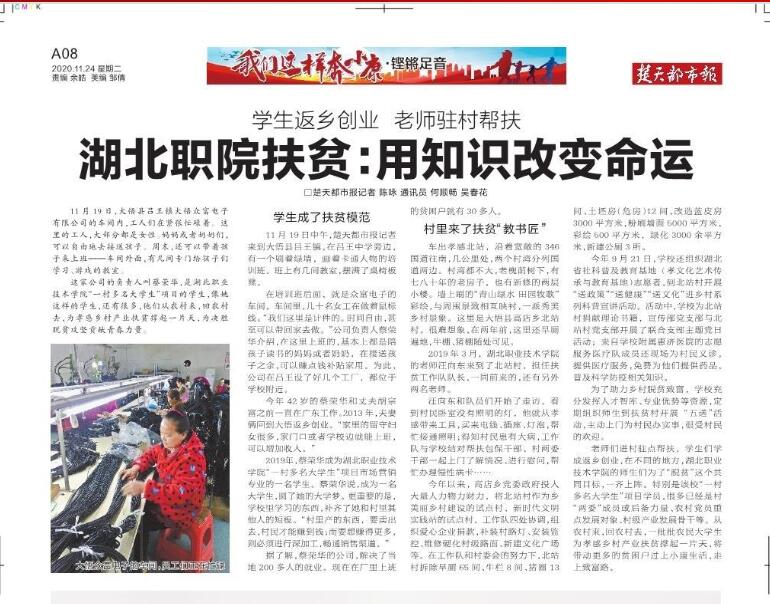 这家公司的负责人叫蔡荣华,是多宝网页版“一村多名大学生”项目的学生,像她这样的学生,还有很多,他们从农村来,回农村去,为孝感乡村产业扶贫撑起一片天,为决胜脱贫攻坚贡献青春力量。