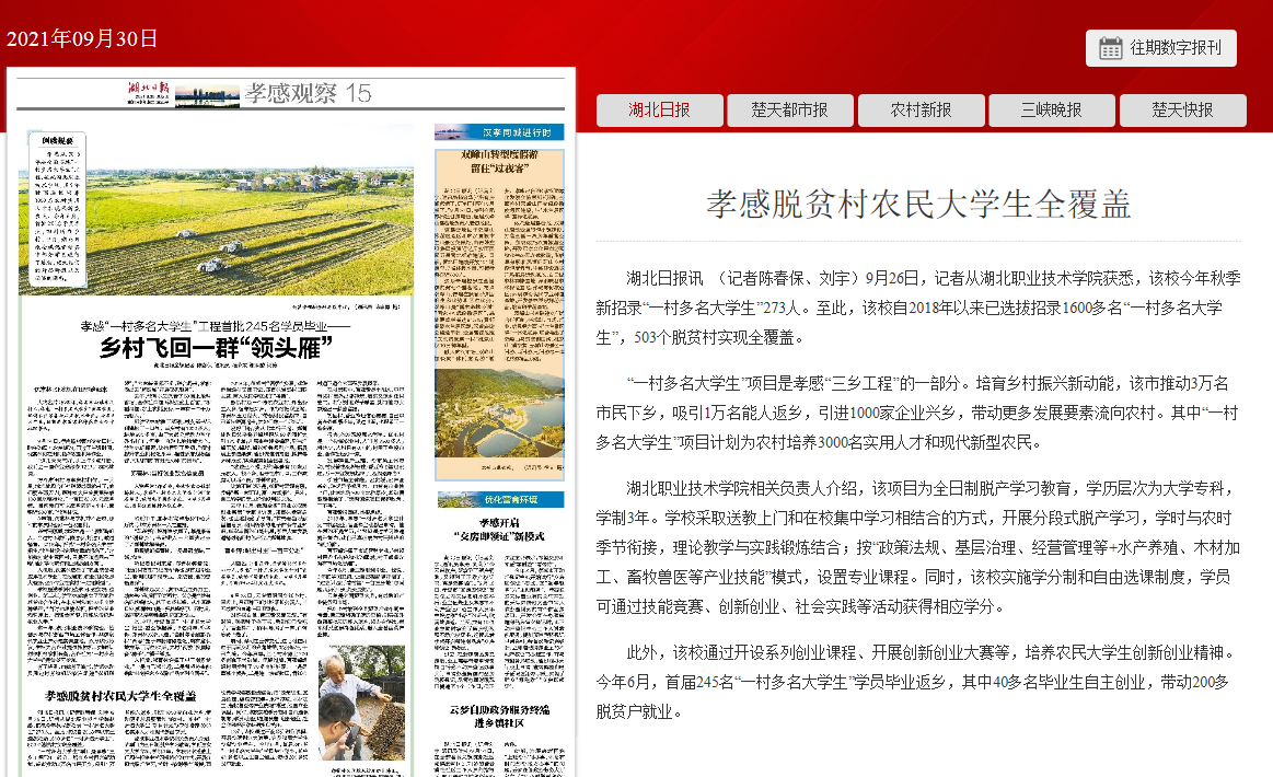 湖北日报讯 (记者陈春保、刘宇)9月26日,记者从多宝网页版获悉,该校今年秋季新招录“一村多名大学生”273人。至此,该校自2018年以来已选拔招录1600多名“一村多名大学生”,503个脱贫村实现全覆盖。