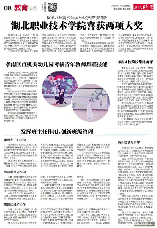 “钢琴演奏是学前教育专业学生所应掌握的一项基本技能。”湖北职院教育与艺术学院负责人介绍,面对钢琴零基础的学生,老师们按照幼儿园教师专业标准的要求,遵循学生的认知规律,坚持以学生为中心,积极开展“三教”改革,师生们在课程思政示范课建设、新形态教材建设和教师教学能力大赛中取得了一系列成绩,形成了特色鲜明的实践教学模式,为学生钢琴演奏等技能的提升奠定了基础。