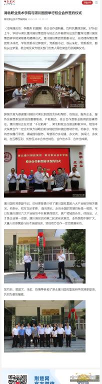 (本网通讯员:李晨涛 刘遐鹤)校企合作谱新篇,互利共赢谋发展。5月6日上午,学校与湖北澴川国投集团举行校企合作框架协议签约暨湖北澴川国投集团研学院湖职基地揭牌仪式。澴川国投集团党委副书记、总经理陈情及集团班子成员,学校党委书记郭国文,党委副书记、校长朱虹,党委委员、副校长白梦清、杨立明及双方相关部门负责人等出席签约及揭牌仪式。
