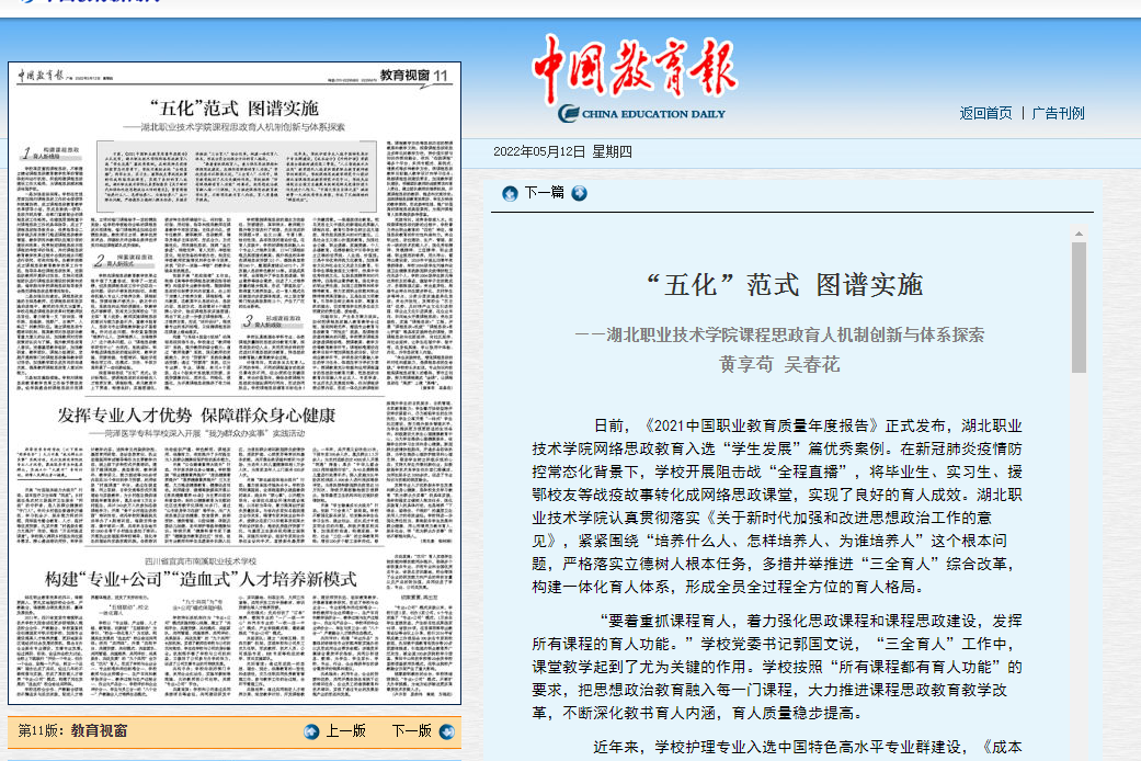 日前,《2021中国职业教育质量年度报告》正式发布,多宝网页版网络思政教育入选“学生发展”篇优秀案例。在新冠肺炎疫情防控常态化背景下,学校开展阻击战“全程直播”,将毕业生、实习生、援鄂校友等战疫故事转化成网络思政课堂,实现了良好的育人成效。多宝网页版认真贯彻落实《关于新时代加强和改进思想政治工作的意见》,紧紧围绕“培养什么人、怎样培养人、为谁培养人”这个根本问题,严格落实立德树人根本任务,多措并举推进“三全育人”综合改革,构建一体化育人体系,形成全员全过程全方位的育人格局。