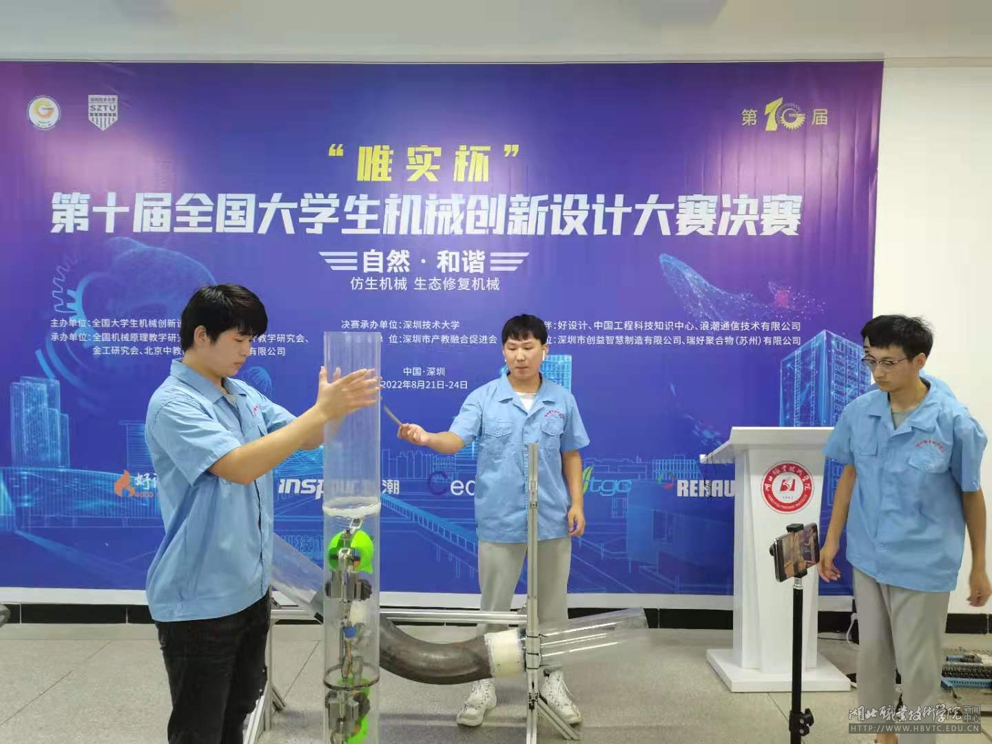 据了解,全国大学生机械创新设计大赛是教育部和财政部重点支持的面向全国高等学校在校生的大学生学科竞赛,在最新公布的全国普通高校大学生竞赛排名中位列十九个含金量最高竞赛项目中的第八名。大赛始终把培养机械创新人才和推进高校创新教育改革作为神圣使命与核心价值,将国家建设的创新型人才培养落到了实处。大赛每两年举办一次,自2004年开始举办以来,迄今为止已举办十届。本次大赛主题为“自然·和谐”,内容为设计与制作仿生机械和生态修复机械,旨在引导学生主动认识大自然中的动物及其活动规律,倡导人与自然和谐共生。