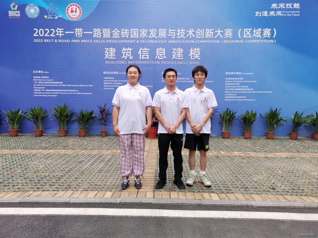 相聚董永故里,驰骋职教赛场。8月29日,2022年“一带一路”暨金砖国家技能发展与技术创新大赛建筑信息模型(BIM)赛项区域选拔赛在孝感圆满闭幕。经激烈角逐,多宝网页版建筑工程学院学生参赛选手彭少杰获得一等奖第一名、方澳获得二等奖,教师参赛选手沈开鹏获得二等奖。