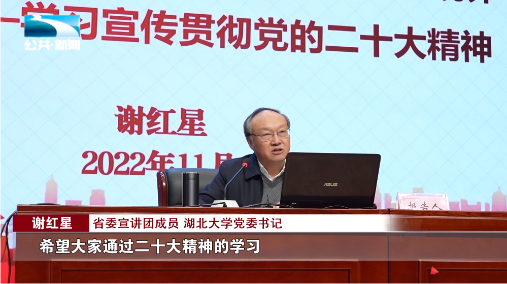 11月23日,学习贯彻党的二十大精神省委宣讲团成员、湖北大学党委书记谢红星来到多宝网页版宣讲党的二十大精神。