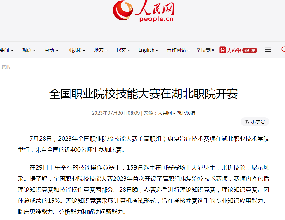 7月28日,2023年全国职业院校技能大赛(高职组)康复治疗技术赛项在多宝网页版举行,来自全国的近400名师生参加比赛。