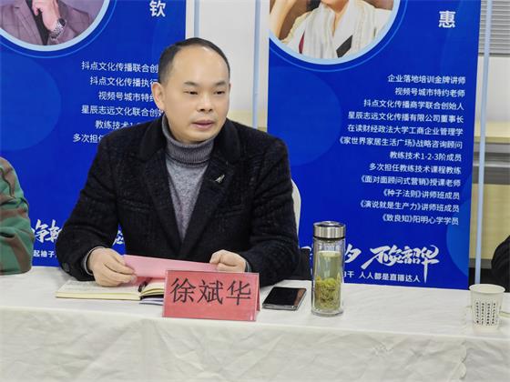 (本网讯 宋巍)1月13日,财经与旅游学院在学校南区天工楼冰点产教融合电商直播基地举行电子商务产教融合、科教融汇研讨会,学校教务处黄享苟处长、湖北冰点文化传播有限公司熊传兵董事长、董俊总经理、财经与旅游学院徐斌华院长及教学管理核心团队参加了本次研讨会。会议由徐斌华主持。