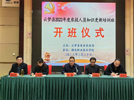 (本网讯 通讯员:马江浩)为进一步优化基层农技人员知识结构,有针对性地弥补能力短板,切实增强基层农技推广体系服务能力和水平,给全面推进乡村振兴、加快农业农村现代化、建设产业强省提供坚强的科技支撑和人才保障。2月20日上午,由云梦县农业农村局主办,多宝网页版继续教育学院、财经与旅游学院承办的云梦县2022年度基层农技人员知识更新培训班顺利开班。云梦县农业农村局党组成员副局长李桃庆,学校副校长梅重出席开班仪式。云梦县农村农业局、学校继续教育学院、财经与旅游学院相关负责人、云梦县53名参训基层农技人员参加了开班仪式。开班仪式由学校财经与旅游学院院长徐斌华主持。