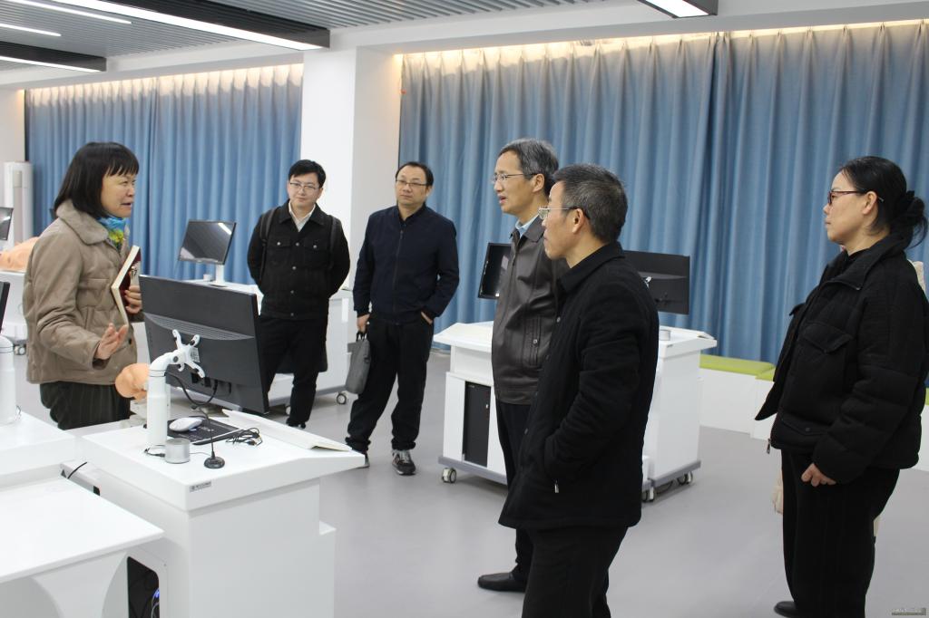 交流会上,刘涛一行详细了解了目前专科段在校三个年级有关人才培养方案落实、教学安排、师资配备、实训条件、学生管理、教学评价、学业成绩等情况,双方就一体化人才培养方案的进一步修订完善、专科段与本科段的教学衔接、线上线下混合式教学改革、优质资源的共享互通以及普通专升本工作等进行了深入交流。随后,刘涛一行实地参观了教育部示范性虚拟仿真实训基地培育项目——护理虚拟仿真实训基地,并在智慧教室与护理专本联合培养班级任课教师代表进行了座谈。