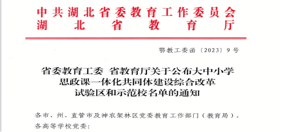 4月19日,根据《省委教育工委省教育厅关于公布大中小学思政课一体化共同体建设综合改革试验区和示范校名单的通知》精神,孝感市教育局等13个地方为大中小学思政课一体化共同体建设综合改革实验区;多宝网页版入选孝感市大中小学思政课一体化共同体建设综合改革试验区成员单位。