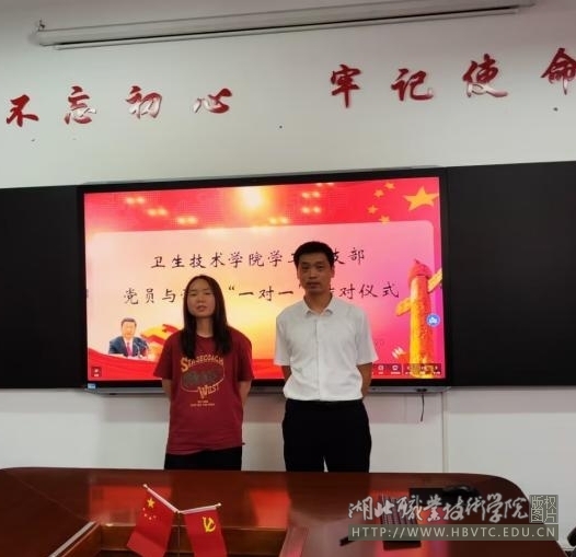 (本网讯 陈文培)6月20日下午,卫生技术学院学工党支部党员与学生“一对一”结对仪式在立德楼党员活动室举行。党总支书记程瑛、学工党支部书记龚晓斌、学工党支部全体党员以及11名帮扶对象参加,仪式由龚晓斌主持。