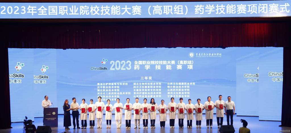 (通讯员 方海琳 李凌云)9月21日至22日,2023年全国职业院校技能大赛(高职组)药学技能赛项在重庆医药高等专科学校进行,来自全国的53支代表队参加本次大赛。我校医学院邵晓芬同学代表湖北省参赛,荣获三等奖。