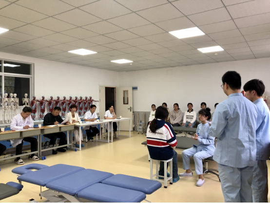 演练现场,参赛选手认真准备,严格按照比赛规则计时开始,全程模拟真实比赛场景,现场抽取演示病案,沉着冷静进行问诊、评定、治疗。专业教师、学院领导认真观看操作环节,细致观察记录。演示完毕,专家有针对性地提问,大家一一客观点评,对选手暴露出的问题提出合理化改进意见。临床经验丰富的张政老师指出,康复技能竞赛的训练工作,要注重与临床实际应用相结合,问诊条理的清晰性、评估重点的针对性、治疗操作的逻辑性,要始终贯穿备赛比赛的全过程,突出专业技术特色,同时也要对病人体现人文关怀。指导老师陈红平勉励学生,要以赛促学,学练并进,厚积薄发,展现团队风采。选手们一致表示,演示中小问题较多,要向老师虚心请教,把老师们语重心长的指正牢记心田,及时整改,全力以赴,刻苦训练,不仅要把任务完成,还要动脑筋把事情做好,以最佳的状态去迎接比赛,不辜负老师和学校的殷切期望。参加观摩的留校学生晏祖儿是大一新生,她感叹,这次观摩增长了见识,颠覆了以前对专业肤浅的想象,给了她全新的认知。没想到一个病案展示下来,有这么多的专业知识,以后她要好好学习,争取也能成为比赛选手中的一员。