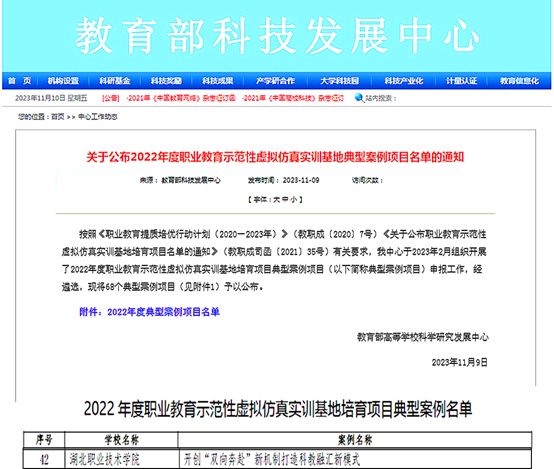 (本网讯张玉洁)11月9日,教育部高等学校科学研究发展中心发布《关于公布2022年度职业教育示范性虚拟仿真实训基地典型案例项目名单的通知》,全国共有68个典型案例项目入选,我校护理学院案例《开创“双向奔赴”新机制 打造科教融汇新模式》成功入选,实现“双高计划”建设成果的再突破。