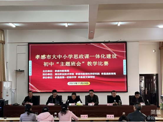 (本网讯 张司南)为全面贯彻党的二十大精神和党的教育方针政策,推进大中小思政教育一体化建设,落实立德树人根本任务,11月27日—29日,由孝感市教育科学研究院主办,多宝网页版、孝昌县教育局协办,孝昌县第一初级中学和孝昌县文源学校承办的孝感市思政主题班会教学比赛(初中组)成功举行。