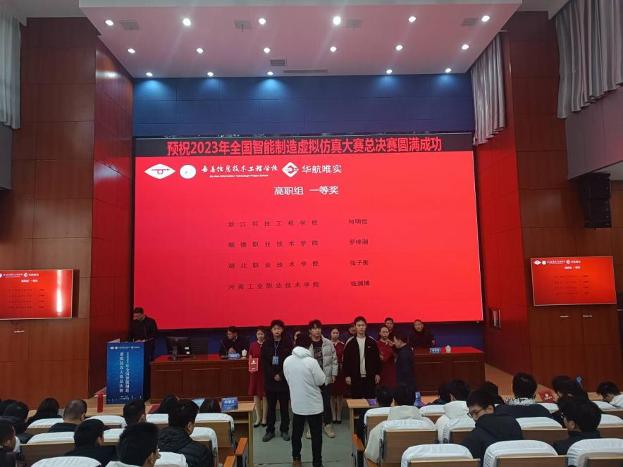 (本网讯 胡友前 )12月22日-24日,2023年全国智能制造虚拟仿真大赛总决赛在嘉善信息技术工程学校举行,我校机电工程学院学生张子衡、徐卓航在谢超明、胡友前老师指导下,分别获全国一等奖(第3名)、全国二等奖(第6名)。