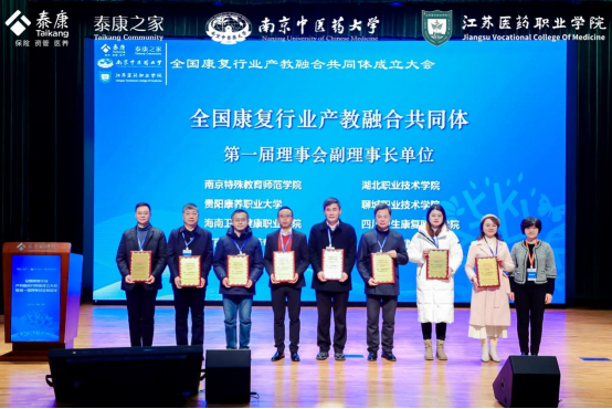 全国康复行业产教融合共同体是在中国职业技术教育学会医药卫生教育专业委员会、全国卫生健康职业教育教学指导委员会和中国国际科技促进会医药卫生教学与研究工作委员会指导下,由泰康之家(北京)投资有限公司、南京中医药大学、江苏医药职业学院牵头成立。