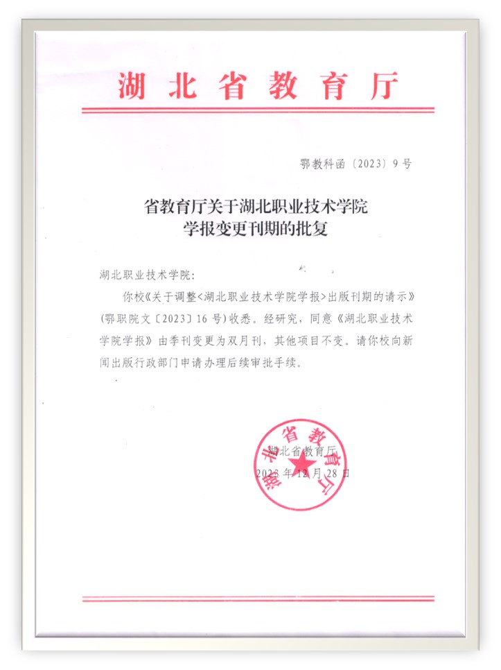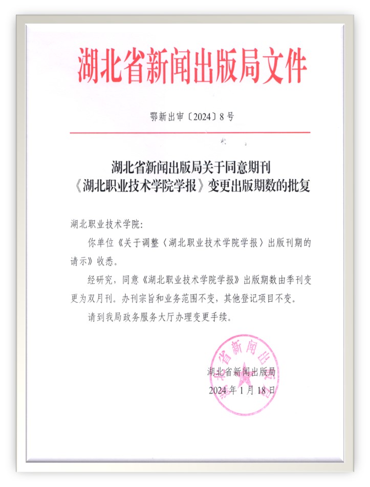 2023年是学报发展极不平凡的一年。这一年里,学报编辑部完成了湖北省委宣传部组织的期刊社会效益评价考核工作,顺利通过了湖北省新闻出版局组织的期刊年检,获得了国家新闻出版署颁发的2024—2028年《期刊出版许可证》,并在此基础上成功申办了双月刊。