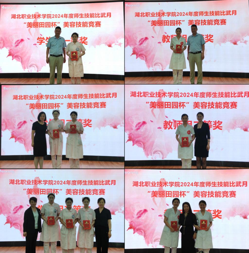 (本网讯 张玉洁 朱妮)5月15日下午,护理学院2024年度“美丽田园杯”师生美容技能竞赛在仁和楼美容护理技能实训中心顺利举办,美容护理教研室梁超兰等4名教师和2022级医学美容技术专业陈茂怡等8名学生同台竞技,教务处处长黄享苟、副处长龚洪浪、护理学院全体班子成员亲临赛场指导,并参加闭幕式。