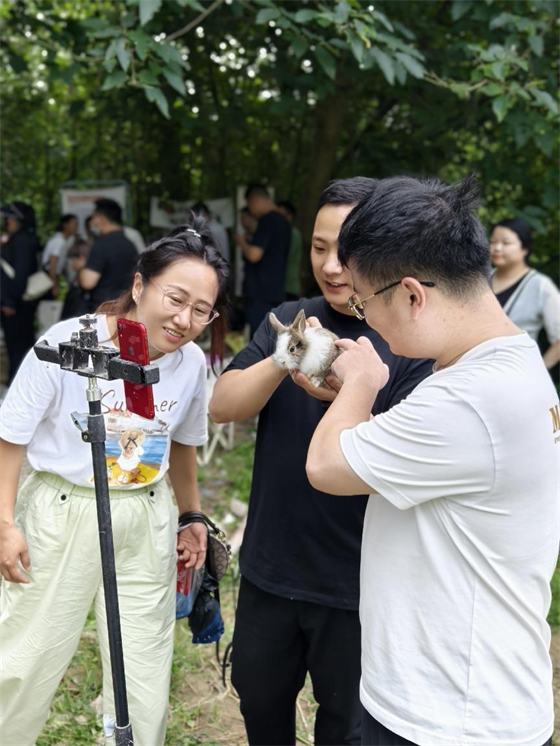 6月7日上午,电子商务专业(一村多)2022级直播营销课程以“一只宠物兔带火一个村”为主题的直播现场实训课在汉川兴隆寺村宠物兔养殖基地基地进行,电子商务教研室主任宋巍,企业兼职教师王芳,养殖基地负责人王乙龙全程指导学生从开播前准备,到直播开播卖货,直播后总结复盘,现场师生互动热烈。