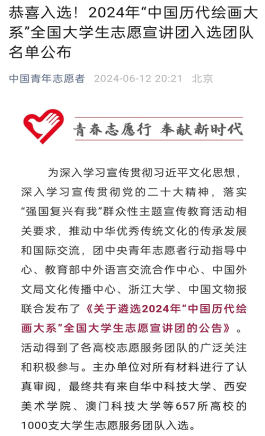 “绘画大系”志愿服务队入选2024年 “中国历代绘画大系”全国大学生志愿宣讲团