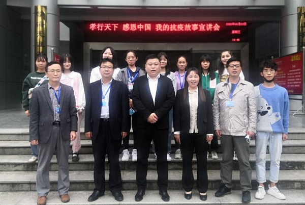刘铖回湖北职院西区文博馆报告厅作报告并与师生合影