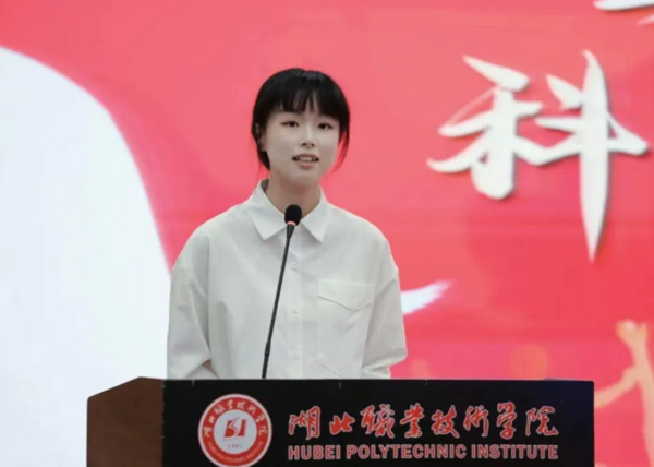 2024年5月23日,吴思怡在湖北职院第24届民族团结进步暨感恩典型先进事迹报告会上作报告