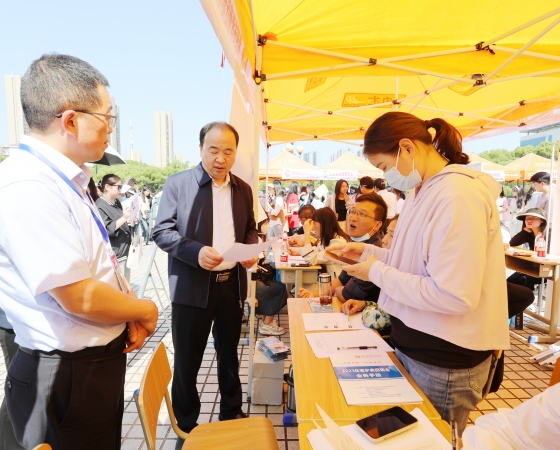 (本网讯 艾欢 陈灏)5月9日,学校举办了2023年“才聚荆楚·立业澴川”医护类招聘会。孝感市人力资源和社会保障局局长谢东安、孝感市卫生健康委员会主任蔡凤珍、学校党委书记郭国文等到招聘会现场指导工作。